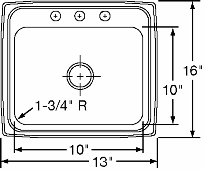 Product Details: Installation Type: Top Mount Material: Stainless Steel Finish: Stainless Steel Thickness: 18 Gauge Sound Deadening: Full Spray Number of Bowls: 1 Minimum Cabinet Size: 18" Sink Dimensions: L: 13" W: 16" Primary Bowl Depth: Please Choose Bowl Dim.: 10'' x 10'' Faucet Holes: Please Choose Drain Size: 3 1/2" Code Compliance: IAPMO, 5 1/2, 6, & 6 1/2" ADA Also