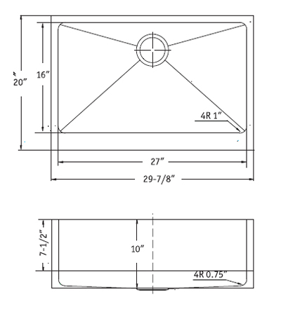 Farmhouse sink, 16/18 gauge, Undermount or Flushmount, 10 high apron with 2 offset, 3 return on all sides, Scored bottom,