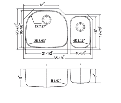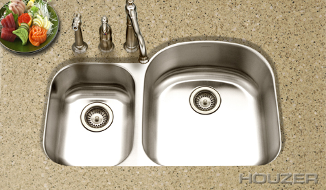 Desinger undermount. Premium grade T-304 stainless steel, 18 gauge, Curved D-bowl, Lustrous satin with highlighted rim, SpecPlus edge, StoneGuard undercoating over sound absorbing pads.
