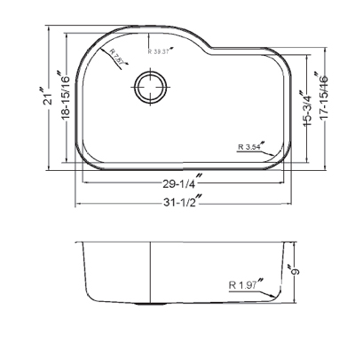 Desinger undermount. Premium grade T-304 stainless steel, 18 gauge, Curved D-bowl, Lustrous satin with highlighted rim, SpecPlus edge, StoneGuard undercoating over sound absorbing pads.