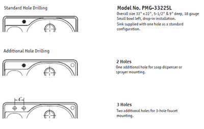 1 hole standard, optional 2 or 3 holes