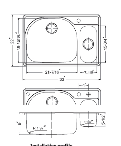 Premiere Designer topmount, Premium grade T-304 stainless steel, 18 gauge, Lustrous satin with highlighted rim, StoneGuard