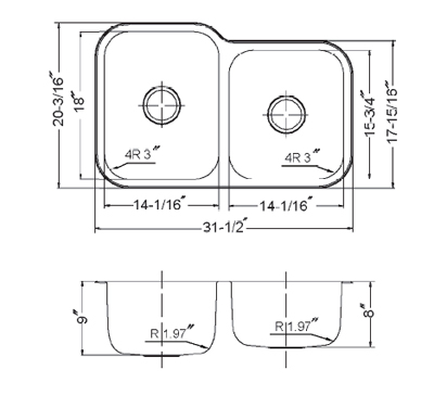 Classic undermount, Premium grade T-304 stainless steel, 18 gauge, Lustrous satin with highlighted rim,