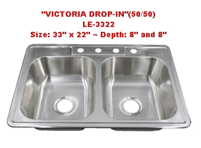 Leonet Victoria 50/50 Drop-In LE-3322 Double Bowl Stainless Steel Kitchen Sink