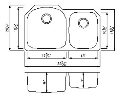 Right Bowl Size: 16-1/2” x 13” x 7”