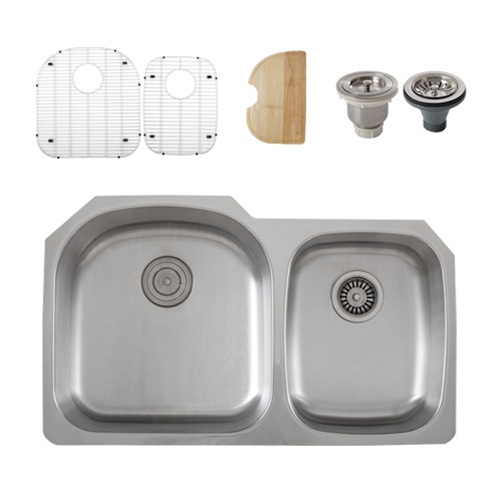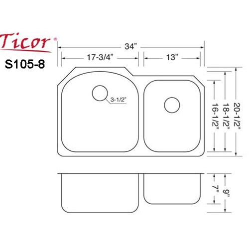 This durable sink will bring a simple elegance into any kitchen. Its large and medium size rounded bowls are designed to make working in your kitchen easy and efficient.  Every Ticor sink is manufactured with an excellent sound dampening system that absorbs and reduces the noise made by a garbage disposal, running water, and any vibration caused from dropping dishes or silverware in the sink. Coupled with a heavy-duty undercoating and a satin brushed finish, you’ll find you are getting a beautiful sink you can be proud to put in your kitchen, along with peace of mind that you can depend on your Ticor sink for years to come.