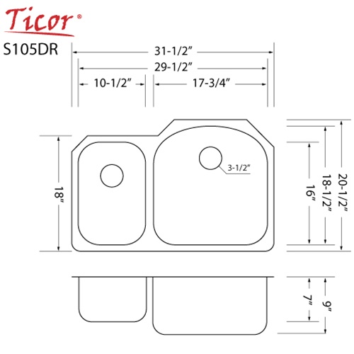 This durable sink will bring a simple elegance into any kitchen. Its large and medium size rounded bowls are designed to make working in your kitchen easy and efficient. Every Ticor sink is manufactured with an excellent sound dampening system that absorbs and reduces the noise made by a garbage disposal, running water, and any vibration caused from dropping dishes or silverware in the sink. Coupled with a heavy-duty undercoating and satin-brushed finish, you’ll find you are getting a beautiful sink you can be proud to put in your kitchen, along with peace of mind you can depend on your Ticor sink for years to come.