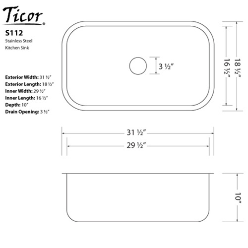 This durable sink will bring a simple elegance into any kitchen. Its large rounded bowl is designed to make working in your kitchen easy and efficient.  Every Ticor sink is manufactured with an excellent sound-dampening system that absorbs and reduces the noise made by a garbage disposal, running water and any vibration caused from dropping dishes or silverware in the sink. Coupled with a heavy-duty undercoating and satin brushed finish, you’ll find you are getting a beautiful sink you can be proud to put in your kitchen and a peace of mind that you can depend on your Ticor sink for years to come.