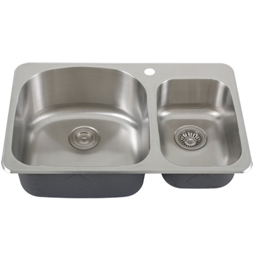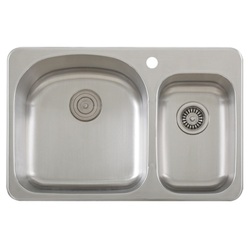 This durable sink will bring a simple elegance into any kitchen. The large and medium rounded bowls are designed to make working in your kitchen easy and efficient. Every Ticor sink is manufactured with an excellent sound-dampening system that absorbs and reduces the noise made by a garbage disposal, running water and any vibration caused from dropping dishes or silverware in the sink. Coupled with a heavy-duty undercoating and satin-brushed finish, you’ll find you are getting a beautiful sink you can be proud to put in your kitchen, along with peace of mind that you can depend on your Ticor Sink for years to come.