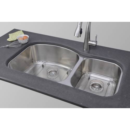 Wells Sinkware 17 Gauge Deck/ 18 Gauge Double Bowl Undermount Stainless Steel Kitchen Sink Package CHU3721-97-1