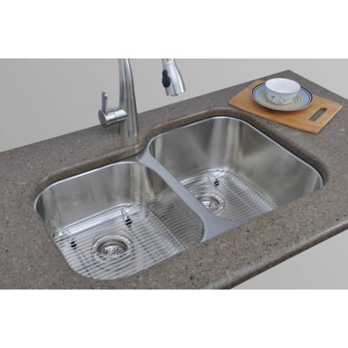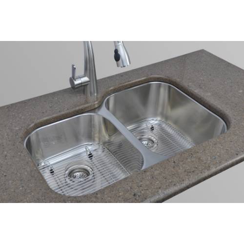 Home / Kitchen Sinks / Wells Sinkware 17 Gauge Deck/ 18 Gauge Double Bowl Undermount Stainless Steel Kitchen Sink Package GLU3221-79-1