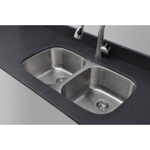 Alpha International U-321B Undermount 70/30 Double Bowl Stainless Steel Sink