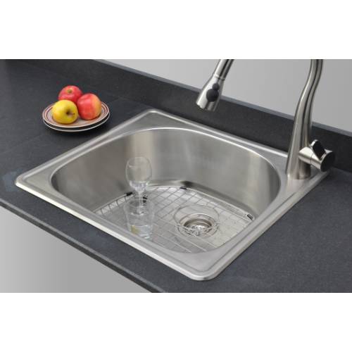 Wells Sinkware 18 Gauge D-shape Single Bowl Topmount Stainless Steel Kitchen Sink Package CMT2522-9DR-1